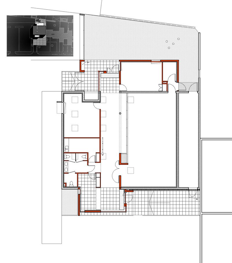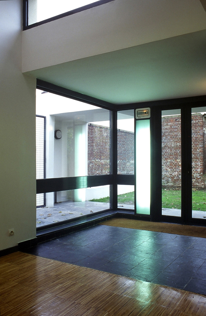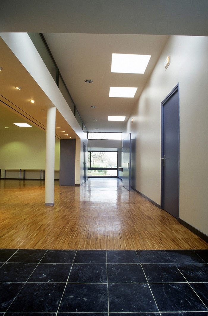 Livraison: Octobre 1997 Maître d’Ouvrage: Université de Paris Nord Architecte Mandataire: Philtre / Christophe Massin BET tce: B. Passalent Coût travaux: 0,2 M€ht (97) SHON: 270 m2 Il s’agit de la transformation et de l’extension de l’ancienne chaufferie de l’Université, afin d’en faire un équipement culturel et associatif comprenant: - Une grande salle pour les répétitions du club de théâtre ou d’autres activités gérées par les associations de l’Université; - Une zone pouvant accueillir de petites expositions et s’ouvrant largement sur la grande salle; - Un labo photo et deux salles pour activités à usage des divers clubs et associations de l’Université; - Un bureau d’accueil, des sanitaires et rangements. L’enveloppe de l’ancienne chaufferie est conservée, son intérieur et ses percements remodelés. Au Nord devant les parkings, une extension est crée pour favoriser l’accueil et offrir une entrée à l’équipement. Au Sud est créée une seconde extension qui contient un bureau et qui permet d’ouvrir la distribution sur le jardin. Les deux extensions constituent les ouvertures extérieures de la distribution des locaux. Plus basses que l’enveloppe de la chaufferie elles jouent du contraste vis-à-vis de cette dernière. Ceci par leurs dimensions, par un traitement architectural détaillé en regard du bloc monolithique de la chaufferie, enfin par leur caractère ouvert et accueillant. Un large parvis minéral (associé à une rampe) permet de se détacher de la cour existante revêtue d’asphalte et contribue à créer l’entrée de l’équipement. Venant terminer une série de logements de fonction pour l’Université, cette transformation leur proposera un achèvement plus noble qu’un simple local technique. Les dimensions modestes des extensions permettent de retrouver l’échelle du tissu pavillonnaire alentour.